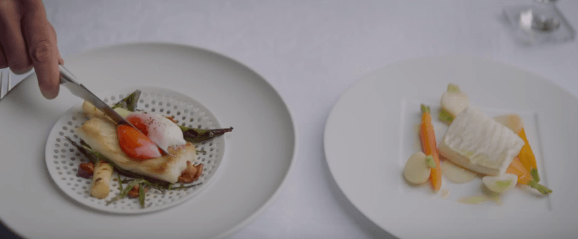 この映画は脚本に問題があります。モノを投げつけたり、どなりちらしたりするシーンをメリハリとしているのも逆効果。なので映画としては残念。しかし、料理関係の映像やうんちくとしてなかなか愉しめるものでしたので共感できる方に是非紹介したいと思いました。美しい盛り付けで芸術的なひと皿が出来上がる風景はストーリーとは無関係に魅力的。そんなシーンを紹介しましょう。